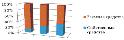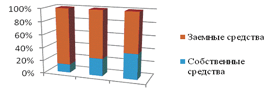 заемные средства (в виде кредиторской задолженности), доля которых снизилась за