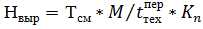 Нвыр = 720*4/2,22*1,02 = 2880/2,26 = 1274,34