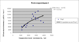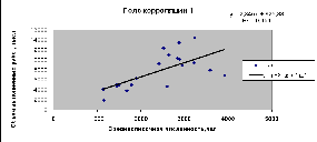 коэффициент эластичности Э=0,88 - при изменении численности на 1% объем