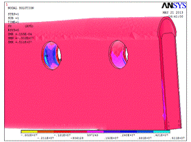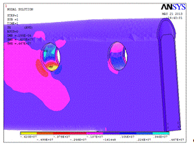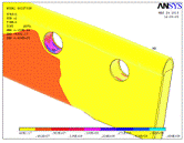 появляются максимальные напряжения, которым соответствует голубой цвет. Также в