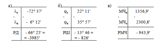 восхода 0 и захода 0 Солнца, надписывая расчетное судовое время явления.