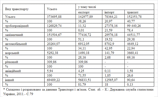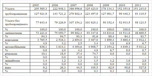 територією України у 2005-2011 рр. за видами транспорту (табл. 1.3) свідчить,