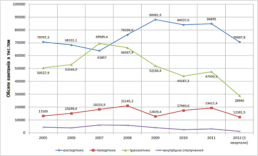 в імпортному, а зменшення обсягів перевезень спостерігається в транзитному й