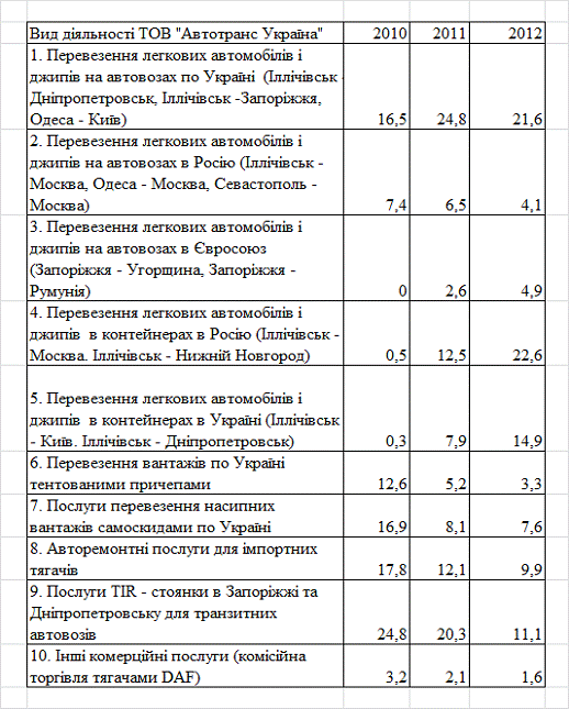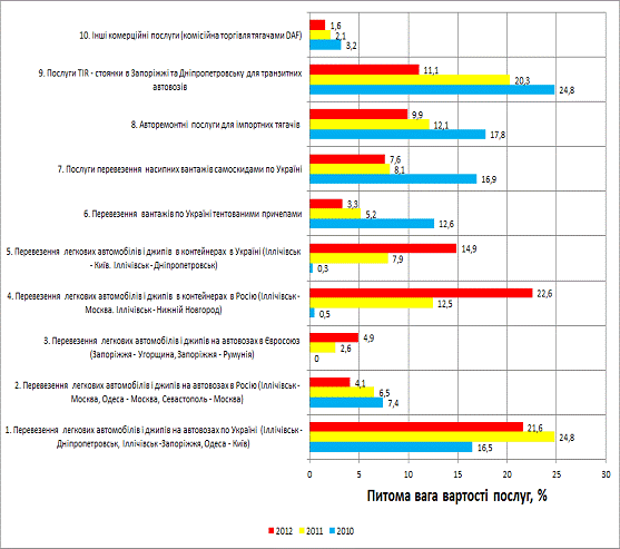 автомобільним транспортом, зросли у 7,9 разу, а їхня частка у структурі