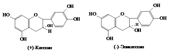 соединения (+)-катехин и (-)-эпикатехин отличаются конфигурацией гидроксильной