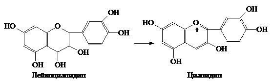 лейкоцианидин легко превращается в окрашенный продукт - цианидин.