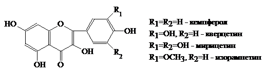 флавоноловых агликонов, из них самые известные - кверцетин, кемпферол,