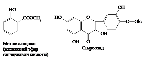 ориентин, С-гликозид витексин и др.; антоцианы, метиловый эфир салициловой