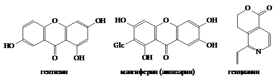 флавоноиды, ксантоны, иногда экстрактивные вещества).