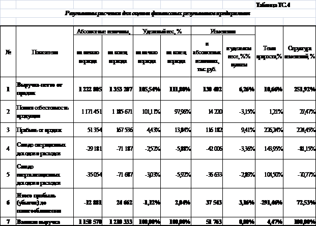 Анализ финансовых результатов