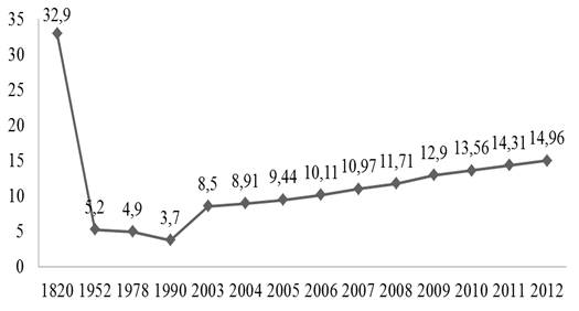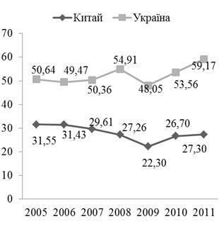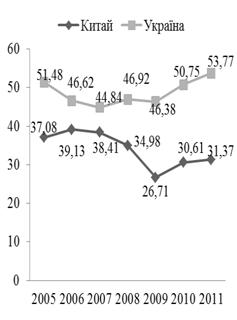 Рис. 2.2. Зміна частки Китаю у