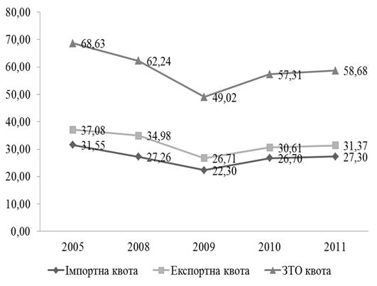імпортної та ЗТО квоти за 2005-2011 рр., %