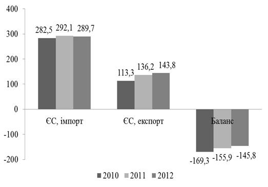Рис. 2.3. Обсяг експорту та імпорту