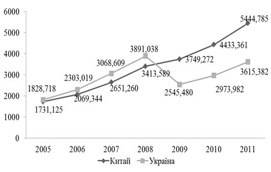 протягом 2005-2011 рр. у Китаї спостерігається позитивне сальдо торгівельного