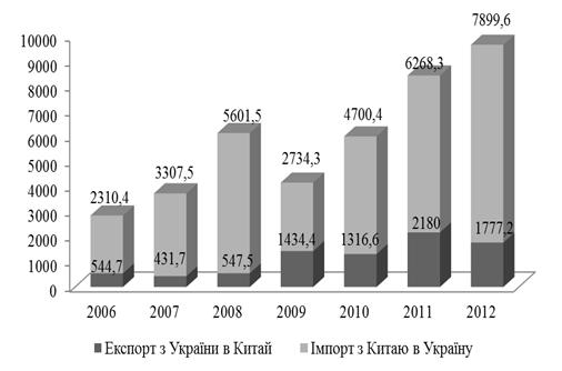 Щодо китайського імпорту, то він у 2012 р. сягнув 1818069 млн. дол. США, що на