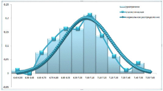 что кривая нормального распределения вполне описывает нашу диаграмму.