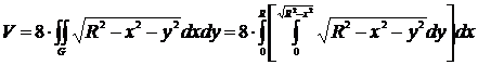 вычислить объем всего шара, найдем объем части шара в 1 октанте, т.к. в других