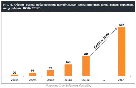 Оборот рынка небанковских немобильных дистанционных финансовых сервисов,