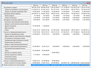 нашего проекта таблица Кеш-фло и таблица Прибылб-убытки