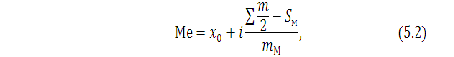 Середина интервала x