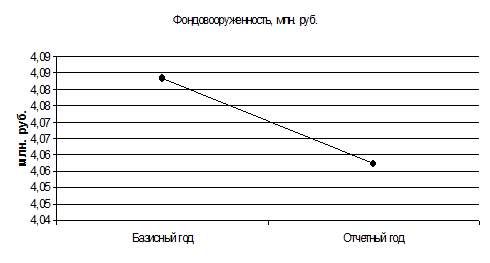 Фондовооруженность труда снизилась на 0,6% за счет того, что темп роста