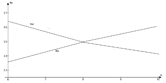Значит, если возрастает коэффициент у первого предприятия, падает у второго.