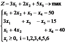 Одержуємо задачу лінійного програмування в стандартній формі: