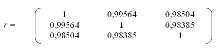 незалежної змінної з іншою. Діагональні елементи r11, r22 , r33 характеризують тісноту зв’язку