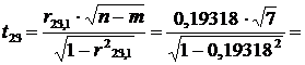 Табличне значення t - критерію при n - m = 7 ступенях свободи і рівні значущості α = 0,05 дорівнює 2,36.