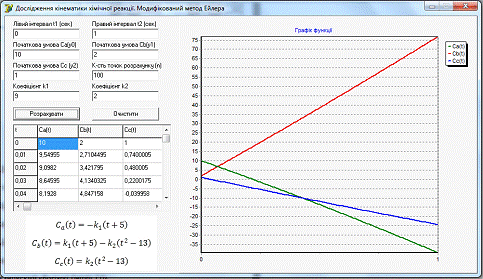 модифікованим методом Ейлера. В результаті буде отримано чисельні значення