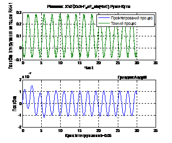 змінювання похибки у часі теж різко змінюється, - в ньому вже важко виділити
