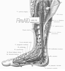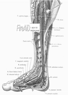 подошвы, она направляется вверх по медиальной стороне голени и бедра. В верхней