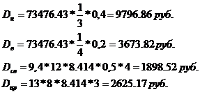 П + Dн + Dв + Dсв + Dпр =73476,43