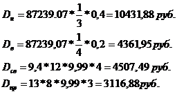 П + Dн + Dв + Dсв + Dпр = 87239.07