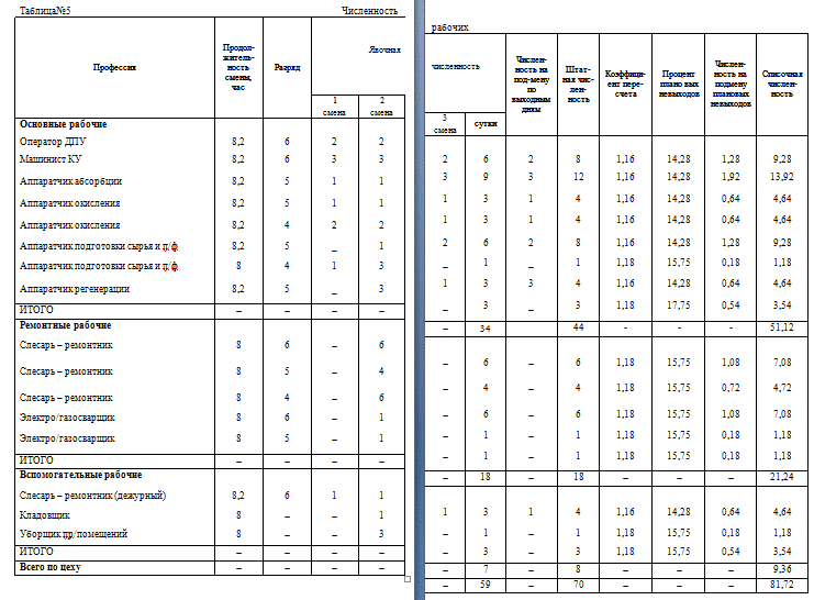 непрерывной работой, числом смен в сутки и продолжительностью рабочей смены.