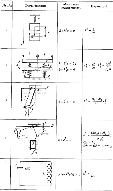 механических систем (в таблице - это 1, 2, 3, 4) математические модели