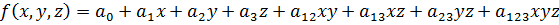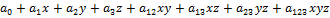 Многочлен Жигалкина функции трех переменных: