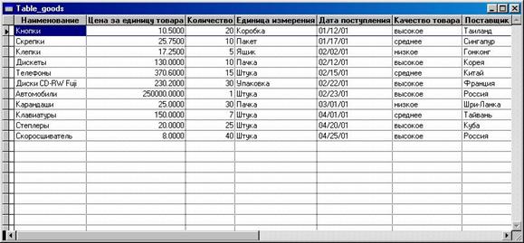 содержащей одну таблицу. Поставлена задача реализации самой базы данных, а