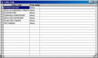 ----Справка выдается по названию поля таблицы.