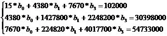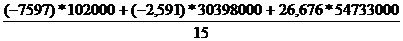у = - 7597 - 2,591*х1 + 26,676*х3.