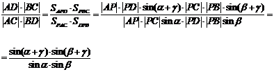 прямоугольных треугольника: треугольник АСD с острыми углами б и г и