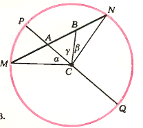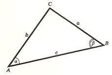 углов, соответственно лежащих против сторон a, b, c - через m, n, p.