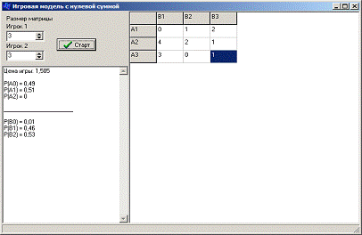 используется метод Брауна-Робинсона решения игровых задач с нулевой суммой.