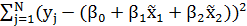кодированных факторов модель (3.7) при n=2 имеет вид