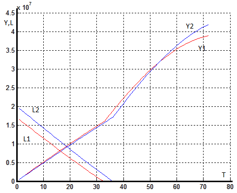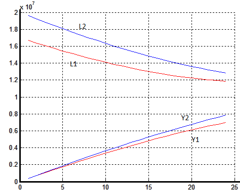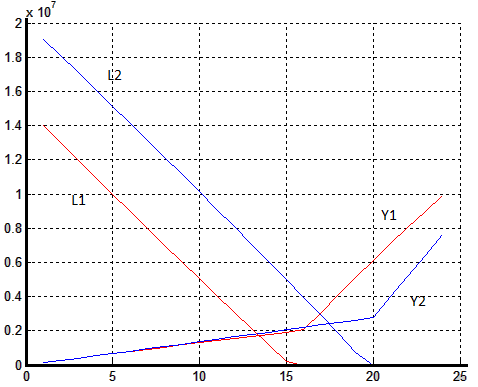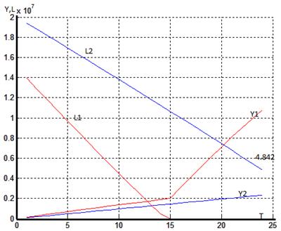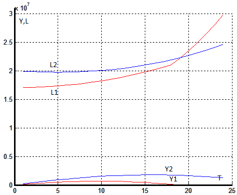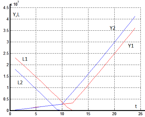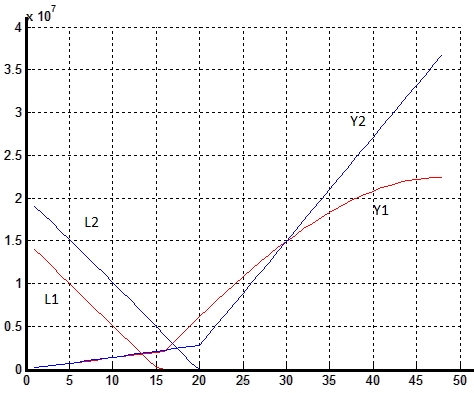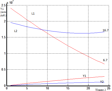 По рисунку 6.22 мы видим, что после 17ого месяца капитал 2ого предприятия