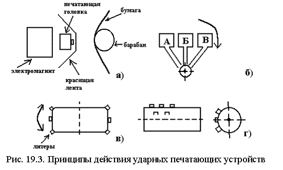 с шрифтоносителем барабанного типа (рис. 19.3, г).