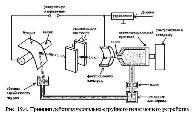 струи чернил по бумаге осуществляется с помощью отклоняющих пластин. Главным