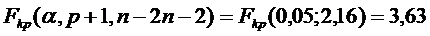 коэффициента детерминации R2 с помощью F - статистики, можно определить,