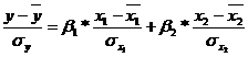 Уравнение множественной регрессии в стандартизованной форме имеет вид: