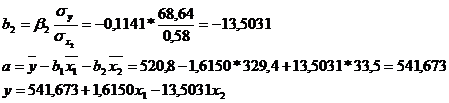уравнение множественной регрессии в естественной форме: